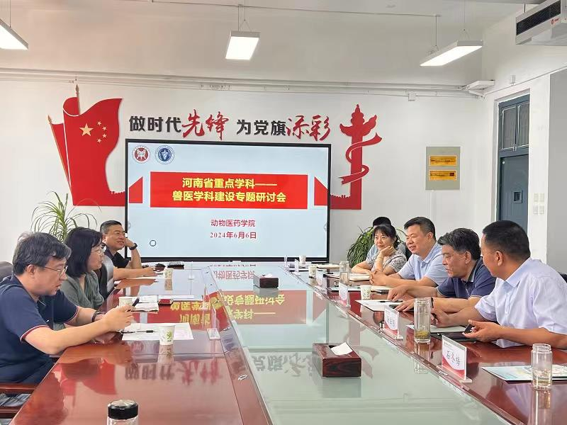 近日,动物医药学院在龙子湖校区善知楼A229会议室召开河南省重点学科——兽医学科建设专题研讨会。会议特邀教育部长江学者、中国农业大学动物医学院郝智慧教授,中国农业大学动物医学院王少林教授到校指导学科建设。威尼斯官网副校长、“兽医”省级重点学科带头人杨国宇出席会议。会议由动物医药学院副院长李利红主持。
