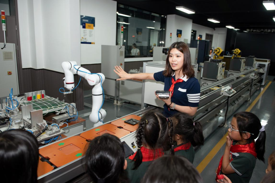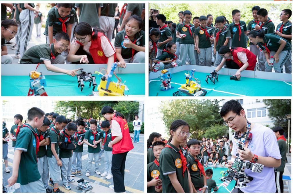 活动开始前,为了激发小学生们的热情,能源与智能工程学院在实验楼广场进行了多种类型机器人和无人机的展示。“作揖机器狗”“微型无人机”“机器蜘蛛”,各种造型新奇的机器人和无人机让小学生兴奋不已,深深地吸引了小学生们的目光。活动第一站,队员们走进能源与智能工程学院机器人实验室。李骞和彭勃两位老师带领队员们近距离观摩不同类型的机器人以及它们的特点和发展空间,并尝试用示教器操作工业机器人,感受现代智能技术魅力。活动第二站,小学生们在张存鹰和张一帆两位老师的讲解下,详细了解3D打印技术和工作原理,并使用3D打印笔进行样品制作。活动第三站,在朱坤华、岳春龙两位老师的引导下,队员们充分发挥想象力和执行力,动手使用开发板进行一些小实验,成为一名“小小工程师”。
