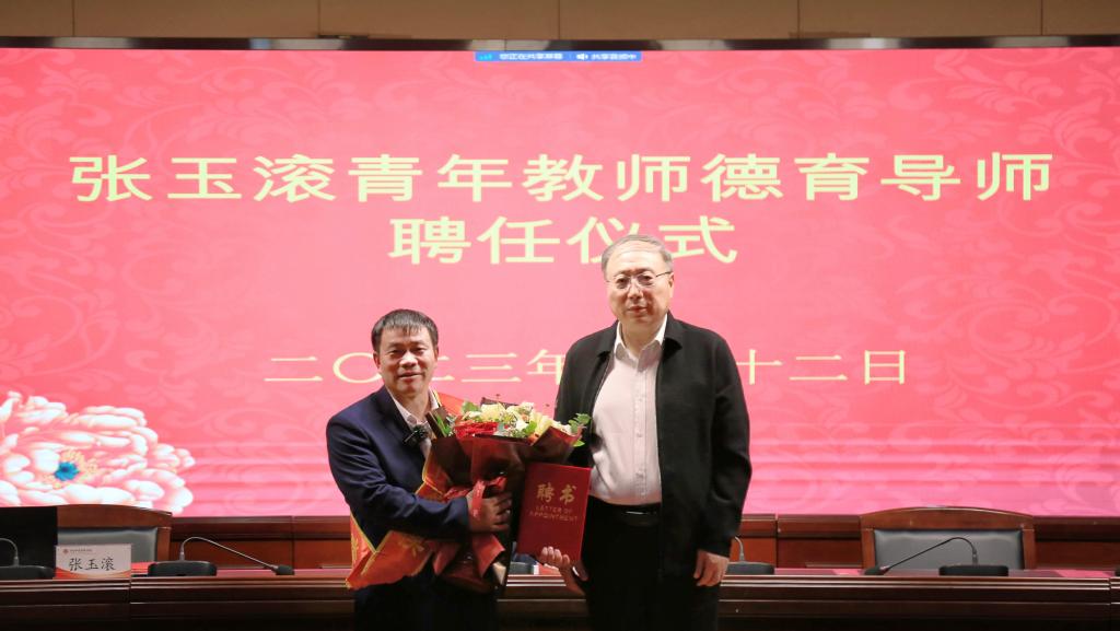 报告会后,学校聘任张玉滚校长为威尼斯官网青年教师德育导师,校党委书记穆瑞杰为张玉滚颁发聘书并合影留念。