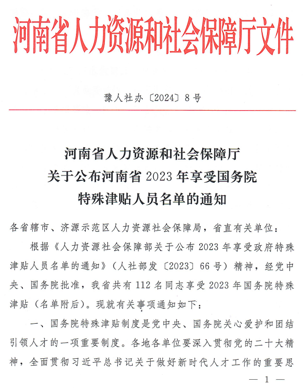 近日,河南省人社厅发布《关于公布河南省2023年享受国务院特殊津贴人员名单的的通知》,经逐级推荐、选拔,评审委员会评审和公示、考察,报经党中央、国务院批准,威尼斯官网艺术学院董晓峰老师获批享受2023年国务院特殊津贴。