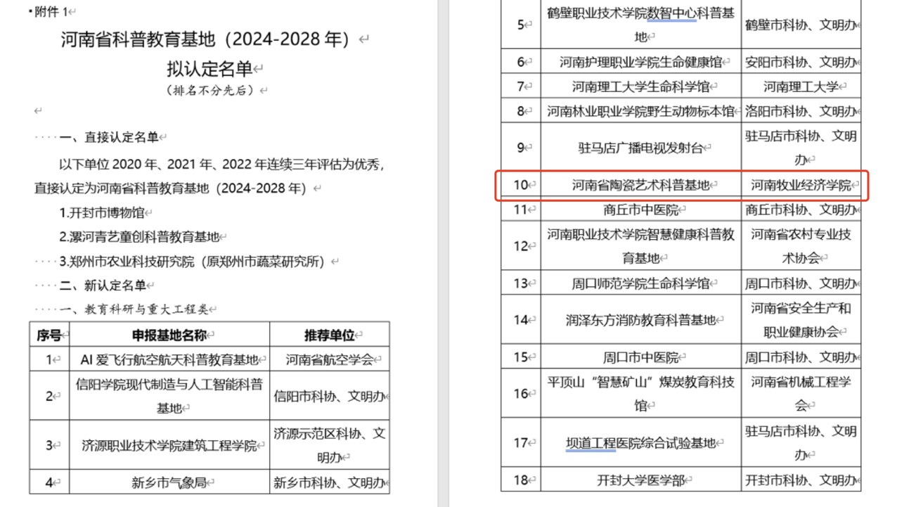 近日,威尼斯官网“河南省陶瓷艺术科普基地”被认定为河南省科普教育基地。