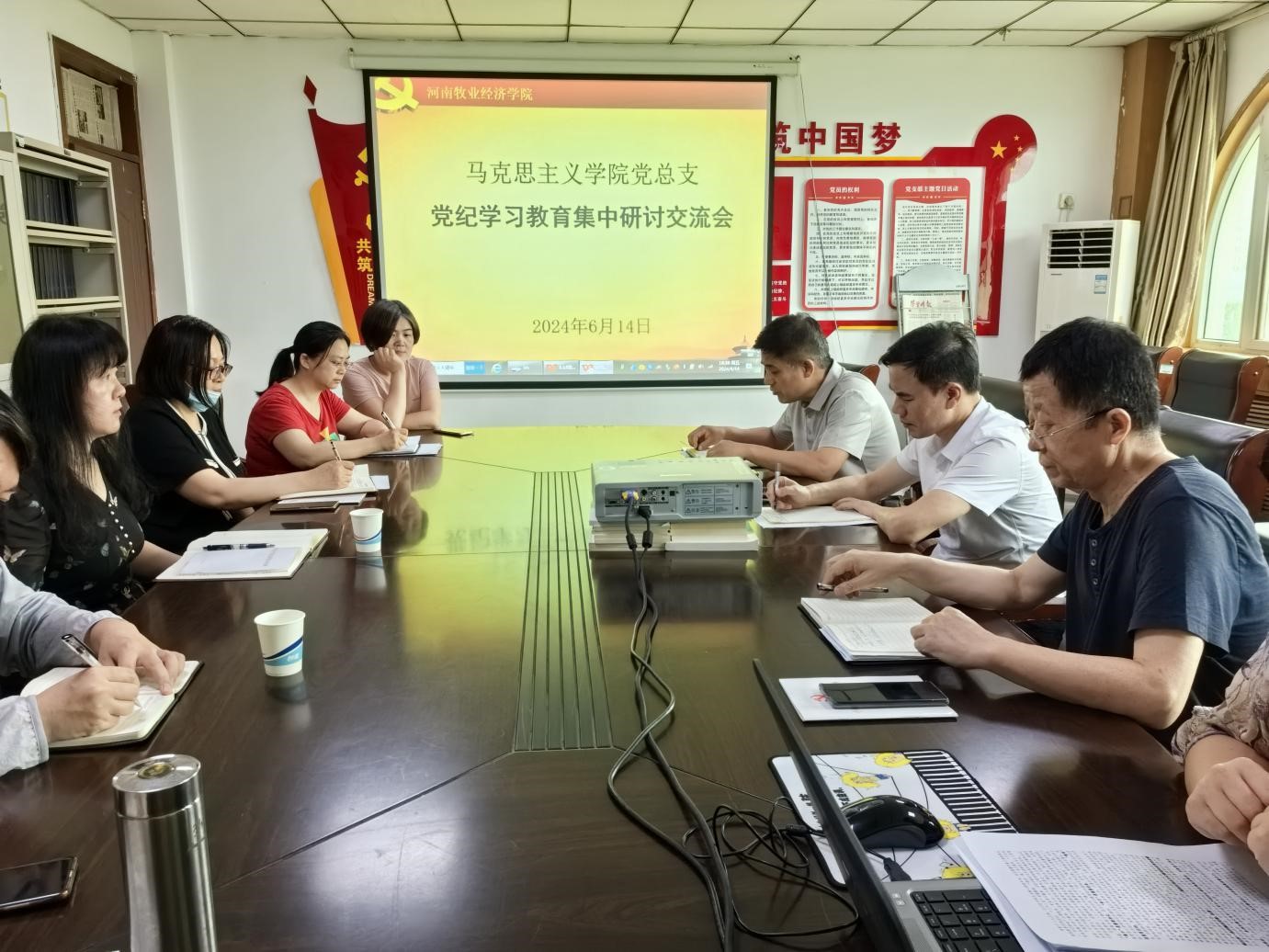 会上,王本聚汇报了马克思主义学院党纪学习教育开展情况并分享了自己的学习心得。随后,马克思主义学院院长白翔、副院长郭霞、形势与政策教研室主任刘明定、第二党支部书记任宇涵、马克思主义基本原理教研室主任王会霞依次发言交流党纪学习教育学习心得。