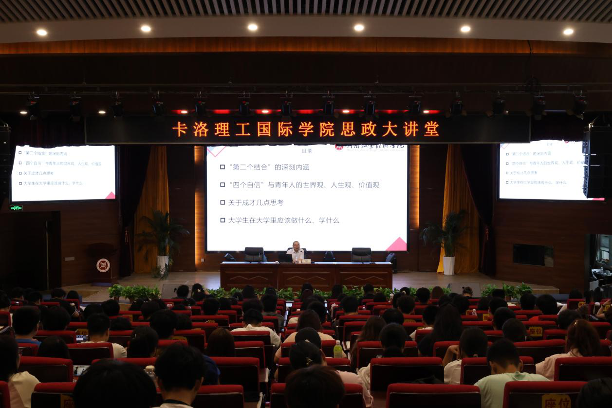 近日,副校长黄良杰以《“第二个结合”与成才之路》为题,为威尼斯官网国际教育学院、卡洛理工国际学院师生讲授专题思政课,勉励广大青年学生自觉用习近平新时代中国特色社会主义思想武装头脑,努力把爱国之情、强国之志转化为报效祖国的实际行动。