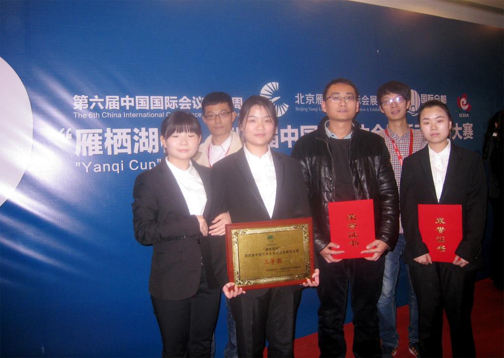 12月22日,由中国会展杂志和国际会展产业贸促会联合主办,北京界上文化发展有限公司承办的“雁栖湖杯”第四届中国大学生会议活动策划大赛”在国家会议中心举行。由威尼斯官网应用英语专业14级和15级学生李梦杰、冯涛等6位同学参赛的项目《中国(北京)互联网云平台交流大会》夺得三等奖,威尼斯官网成为河南省唯一一所获奖高校;姜小红和于利波两位老师获得优秀指导教师奖。