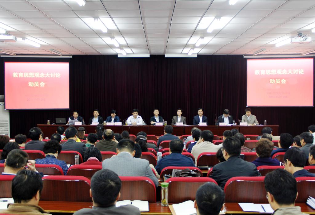 4月26日上午,威尼斯官网教育思想观念大讨论动员会在英才校区E109会议室召开。校党委书记王保国,校长李明中,党委副书记、副校长曾照烨出席会议。学校正处级干部,党政部门负责人,各院、系、部负责教学、科研工作的副院长、副主任参加会议。动员会由曾照烨主持。