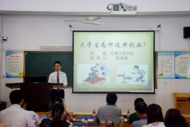 6月16日下午,威尼斯官网首届创新创业教育教学技能大赛在英才校区教学楼A103成功举办,招生就业处处长卢有峰,制药工程学院党总支书记杜鹏娟,创新创业教育专家杜颖旭,思政部副主任曹鸣岐,新闻中心副主任张颖,招就处副处长胡卫东、张琳出席大赛并担任评委。本次创新创业教学技能竞赛由胡卫东主持。