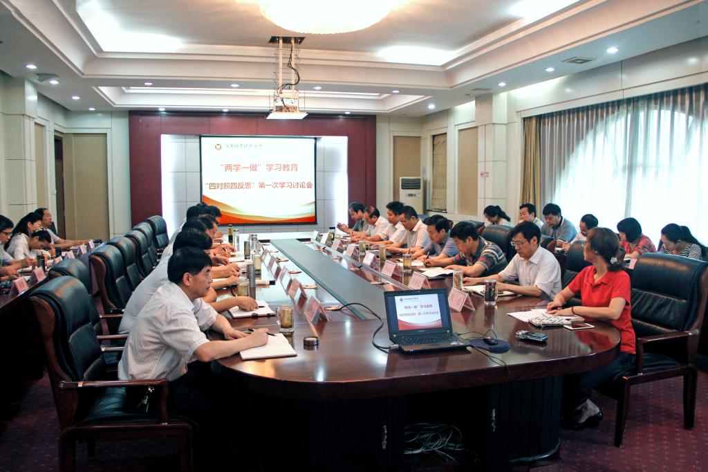 7月19日,学校在英才校区行政楼六楼会议室召开“两学一做”学习教育“四对照四反思”第一次学习讨论会。校领导、党委委员、管委会主任、学习教育办公室负责同志、部分总支书记及宣传部有关人员参加了学习讨论。会议由校党委书记王保国主持。