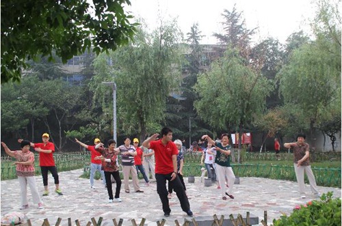 食品工程学院暑期社会实践服务队师生来到洛阳市伊川县老干部活动中心,义务教授晨练的老人们太极拳,与此同时为他们讲解老年人食品安全知识。服务队又来到了洛阳市伊川县幼儿园,在这里开展了以“体验素质拓展,共度七彩假期”为主题的儿童素质拓展活动。活动中队员们不断告诉小朋友们团队合作的重要意义,引导他们团结起来解决问题。