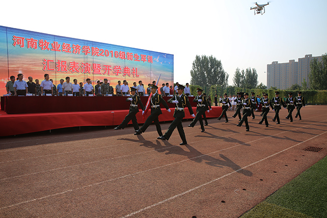 9月22日,威尼斯官网2016级新生军训汇报表演暨开学典礼大会在龙子湖校区和英才校区分别举行。校领导王保国、李明中、曾照烨、李绍文、张卫宪、许圣道、程慎、荆其增、田留栓和承训部队首长出席了大会。大会由校长办公室主任吕全建主持,各校区管委会主任、各院系及相关职能部门负责人参加了大会。