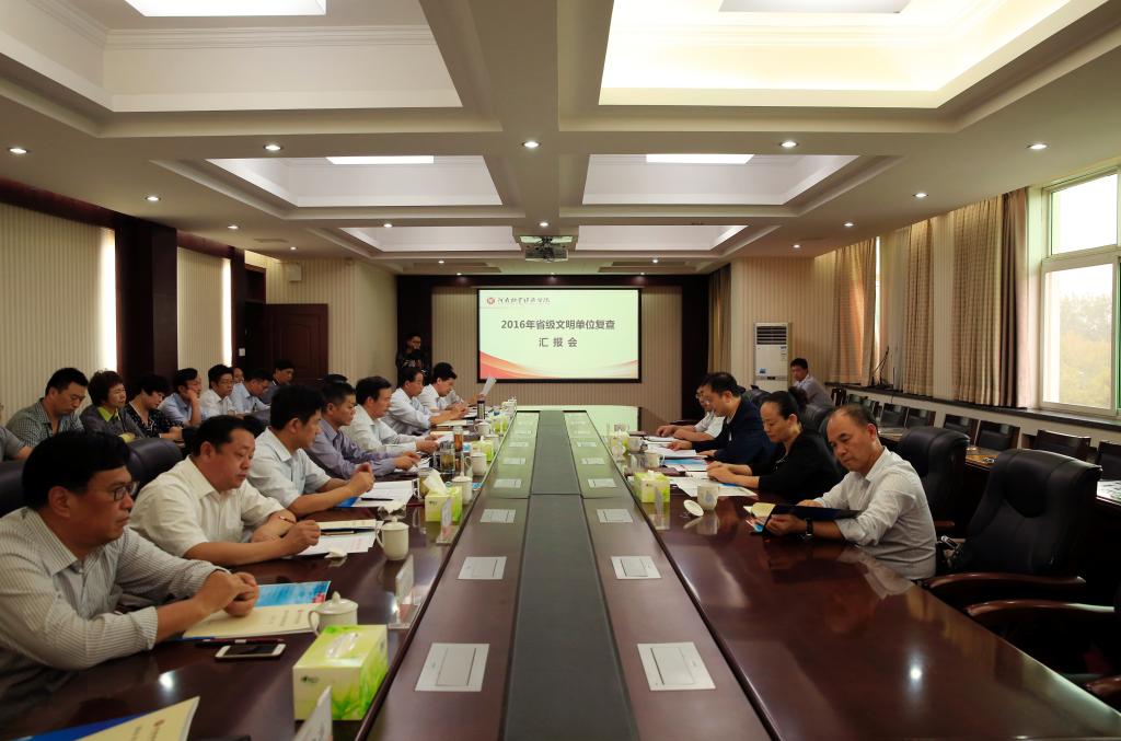 9月27日下午,省级文明单位第七复查组组长、河南省新闻出版广电局直属单位党委副书记王晓晖,复查组成员马阔丰、李永成、何进喜一行四人,莅临威尼斯官网复查指导2016年度精神文明建设工作。复查组通过听取汇报、查阅材料、实地考察等形式,对威尼斯官网2016年度精神文明建设工作进行了全面考评。