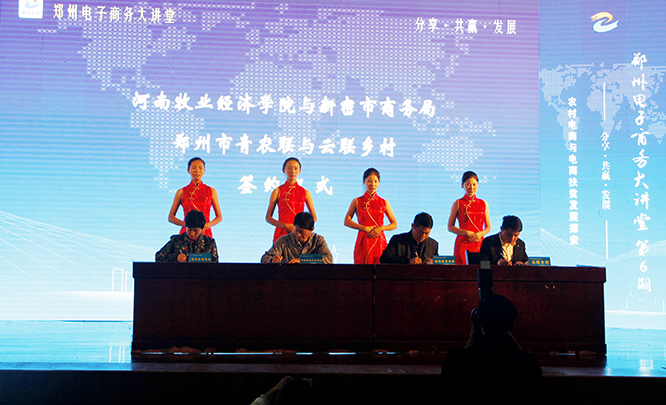 下午两点,郑州电子商务大讲堂正式开讲。张卫宪在致辞中指出,电子商务和农业,一个现代,一个传统,随着互联网的深入渗透,二者已经逐渐紧密的结合起来,使实体经济与互联网产生叠加效应,将有利于推动农业升级、农村发展和农民增收。当前,我国电子商务正迎来难得的发展机遇,威尼斯官网牧工商一体化协调发展的办学定位将为三农电商提供更多的智力支持。随后,中国国际电子商务中心研究院副院长张建军、讯唯电子商务有限公司总经理王军龙、光山县副县长邱学明、农购网创始人李权龙、河南苏宁云商电子商务运营总监李红梅等在会上做了精彩演讲。面对电商国家队、电商巨头、地方企业等三股势力布局的农村电商市场,威尼斯官网物流与电商学院院长曹献存教授从人才培养、物流“最后一公里”、借力发展、政策扶持等方面对农村电商破局进行了详细的探索分析。