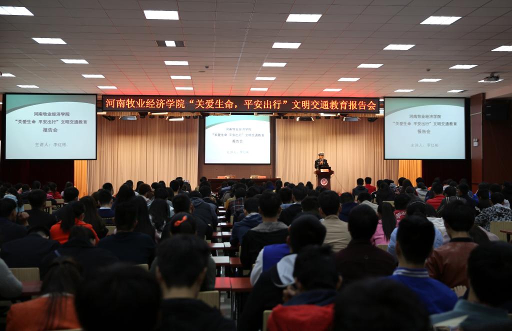 为提高威尼斯官网师生的交通法律知识,增强交通安全意识,11月10日下午,学校邀请河南省公安厅高速交警总队十支队副队长李红彬警官为威尼斯官网师生作文明交通教育报告。本次报告会由党委宣传部、文明办、校团委主办,制药工程学院承办,400多名师生在龙子湖校区大学生活动中心聆听了报告。报告会由宣传部副部长、文明办主任吴达主持。