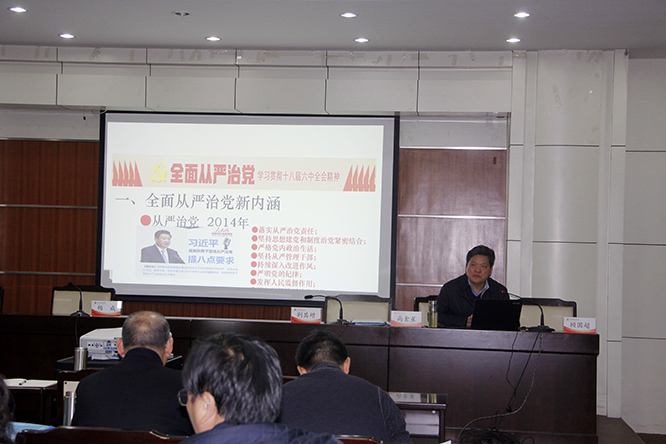 高金星做了题为《全面从严治党,严肃党内政治生活》的专题报告,从全面从严治党的新内涵、全面从严治党的重大意义和全面从严治党的新举措三个方面,对十八大以来以习近平同志为核心的党中央在全面从严治党方面的重要思想和《关于新形势下党内政治生活的若干准则》、《中国共产党党内监督条例》进行了深入解读,并对学习贯彻十八届六中全会精神,严肃党内政治生活,认真落实主体责任和监督责任提出了明确的指导建议。