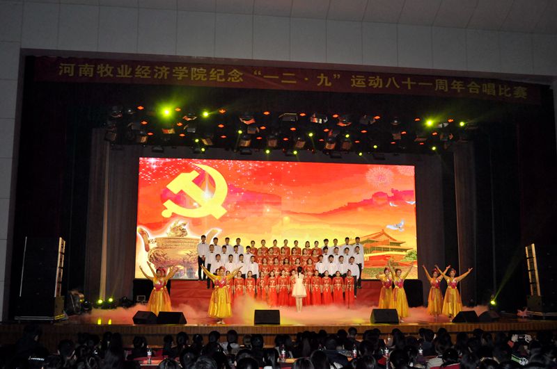 为纪念“一二•九”学生爱国运动八十一周年,弘扬社会主义核心价值观,进一步激发青年学生的爱国荣校热情,12月7日、8日,由学工部、校团委、公共艺术教研部主办的9778818威尼斯纪念“一二•九”运动八十一周年合唱比赛分别在英才校区大礼堂、龙子湖校区活动中心隆重举行。校党委副书记、副校长曾照烨,副校长许圣道,副校长陈艳,工会主席田留栓出席活动并观看整场比赛。相关职能部门负责同志,各院(系)党总支书记、副书记以及团总支书记、辅导员老师与近3000名学生一同观看了比赛。