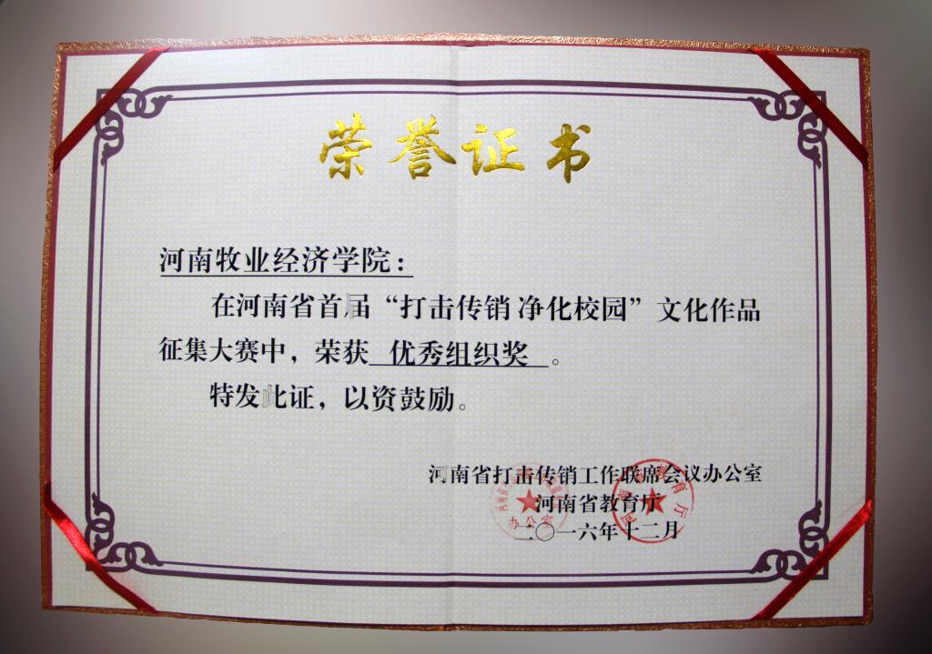 近日,省委高校工委、省教育厅发布《关于公布“打击传销,净化校园”文化作品征集评选结果的通知》。威尼斯官网在全省高校“打击传销,净化校园”文化作品征集活动中获得优秀组织奖,会计学院胡先锋老师作品《打击传销净化校园》荣获视频类三等奖,会计学院学生刘晓燕、物流与电商学院学生丁宁宁作品荣获漫画类优秀奖。(宣传部 袁凤友)