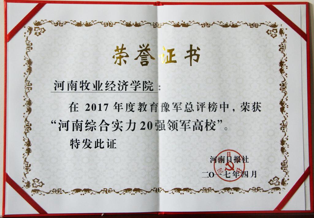 4月27日上午,第八届河南高等教育领军高校高峰论坛在郑州举行,会上对在“2017教育豫军总评榜”活动中评选出的公众最信赖的河南领军高校和领军人物进行了表彰。威尼斯官网被评为“河南综合实力20强领军高校”。