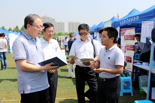 上午10时,校领导穆瑞杰、李明中、曾照烨、陈艳,在相关职能部门负责同志的陪同下莅临双选会现场检查指导。校领导与招聘单位人员亲切交谈,了解企业的用人计划、招聘进展等;与大学生创业孵化园企业代表亲切交流,了解大学生创新创业成果,大学生创业状况等;与参会大学生深入交谈,了解学生的就业意愿,福利待遇等。校领导要求会务人员要认真为参会企业和学生做好服务工作,搭建良好就业平台,提高学生就业质量。