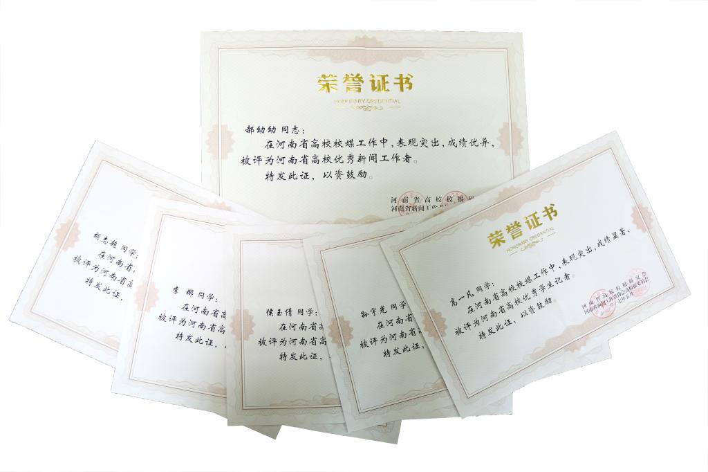 日前,2016年度河南省高校优秀新闻工作者和优秀学生记者评选结果揭晓,威尼斯官网郝幼幼同志获“河南省高校优秀新闻工作者”荣誉称号,学生记者高一凡、孙宇光、侯玉倩、李娜、胡志超获“河南省高校优秀学生记者”荣誉称号。