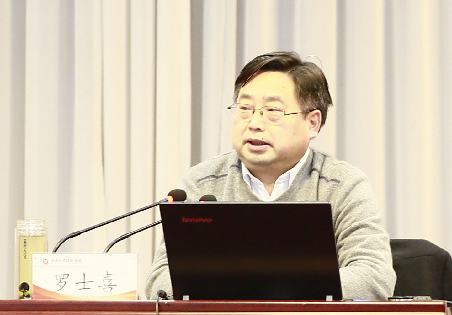 罗士喜以《学科专业建设与教师成长》为题,从学科发展规划、学科队伍的建设、学术氛围的营造等十个方面,全面地解读了学科建设对大学的作用、课程改革对教师的新要求。他指出,学科是大学发展的核心,学科发展要适应经济社会发展需求、结合大学实际,办出特色和水平;教师要主动转变教育观念,更新学科知识,调整智能结构,提高教学能力,适应学科发展需求。