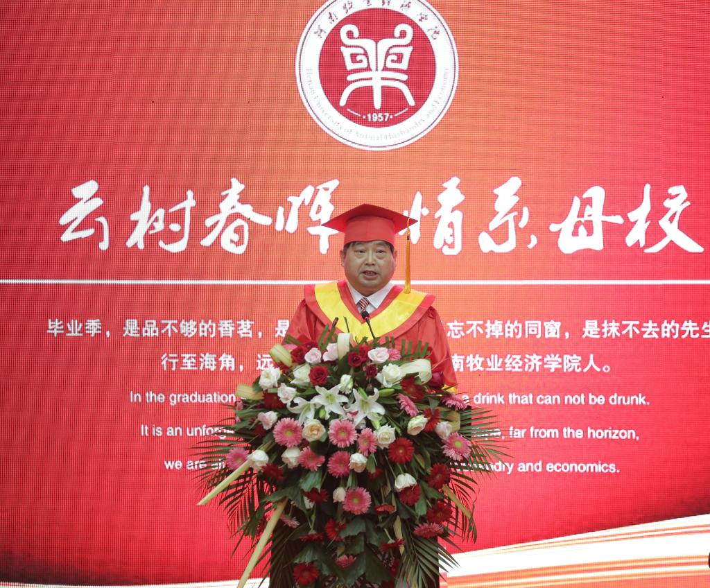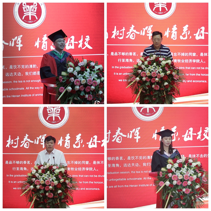 教师代表、动物医学院宋予震副教授寄语毕业生不畏艰难敢于担当,自由思考独立表达,守护公平践行正义,保证气节永不越位,以学校“牧工商一体化”思想,“全攻全守”,坚定信念,努力夺得人生的“世界杯”。
