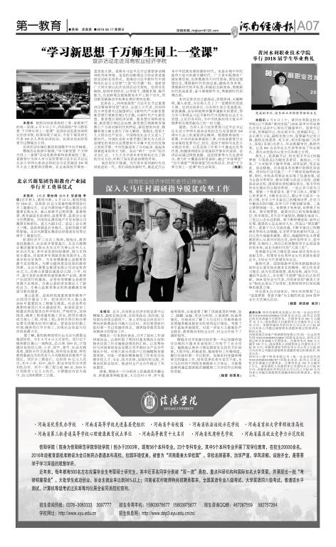 《河南经济报》专题报道威尼斯官网“学习新思想 千万师生同上一堂课”宣讲活动和脱贫攻坚工作