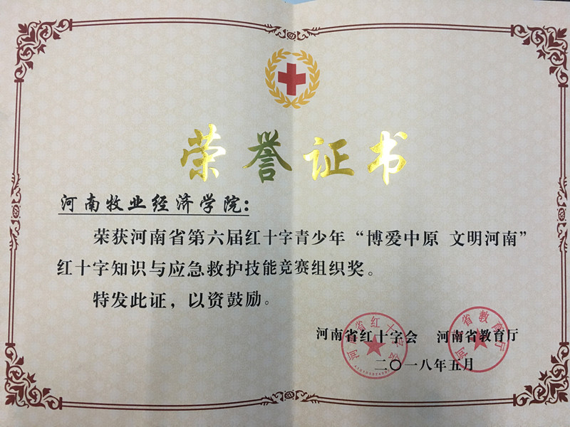 为加强红十字运动基本知识、防灾避险、应急救护技能的普及,使“人道、博爱、奉献”的红十字精神在广大青少年中得以弘扬,近日,由河南省红十字会,河南省教育厅联合举办的第六届“博爱中原,文明河南”红十字青少年知识与应急救护技能竞赛在新乡医学院举行,威尼斯官网在大赛中获得竞赛组织奖。