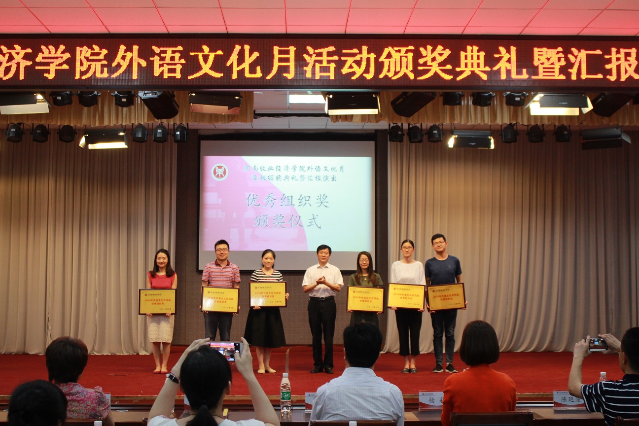 汇报演出在国际教育学院同学们带来的电影配音表演《天生一对》中拉开了帷幕,随后各项赛事的颁奖仪式与获奖选手的演出穿插进行。有经济贸易学院、工程管理学院选送的《公主日记》配音表演,物流与电商学院的选送《小王子》配音表演,制药工程学院选送的《疯狂动物城》配音表演,艺术学院选送的《冰雪奇缘》配音表演,还有荣获全国高等院校英语导游服务三等奖的外国语学院旅游英语专业学生王颖颖带来的英文导游讲解——紫禁城,为观众带来了一场英语技能和英语文化的盛宴,充分展现了威尼斯官网大学生的英语综合应用能力,赢得了嘉宾和观众的一致好评。副校长许圣道等嘉宾领导为荣获优秀组织奖、优秀指导教师奖及各项赛事一二三等奖的获奖集体和师生颁奖。