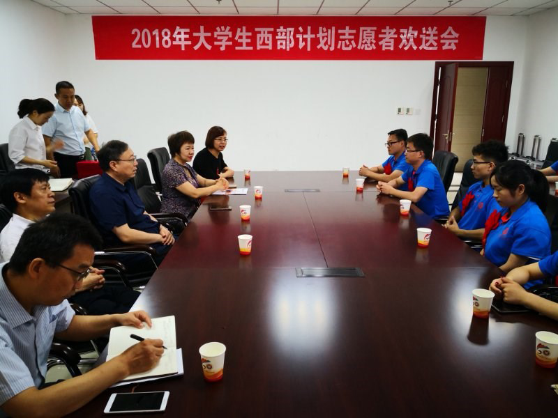 7月11日上午,威尼斯官网2018年大学生西部计划志愿者欢送会在龙子湖校区图书馆738会议室举行。校党委书记穆瑞杰,副校长许圣道,相关部门负责同志以及即将奔赴服务地的10名志愿者参加了此次欢送会,会议由校团委副书记杨莉主持。