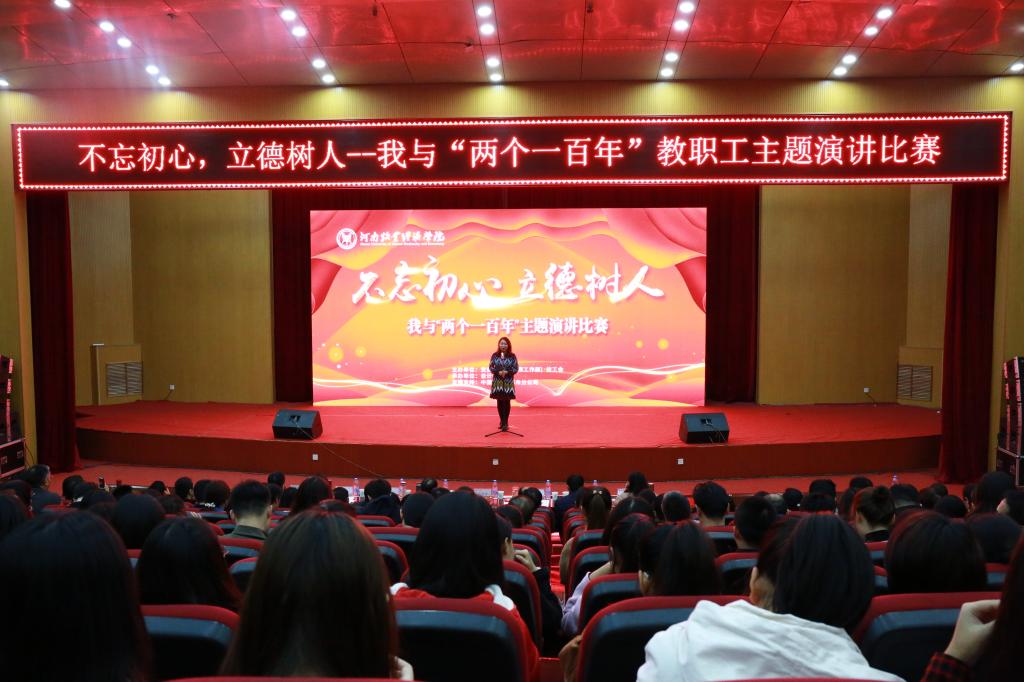 11月8日下午,由党委宣传部(教师工作部)、校工会主办,会计学院承办的“不忘初心,立德树人——我与‘两个一百年’”教职工主题演讲比赛在英才校区学术报告厅圆满落幕。副校长许圣道出席比赛现场,党委宣传部、校工会、人事处、教务处、教学质量与评估办公室、会计学院等相关部门负责人与六百余名师生共同观看了比赛。