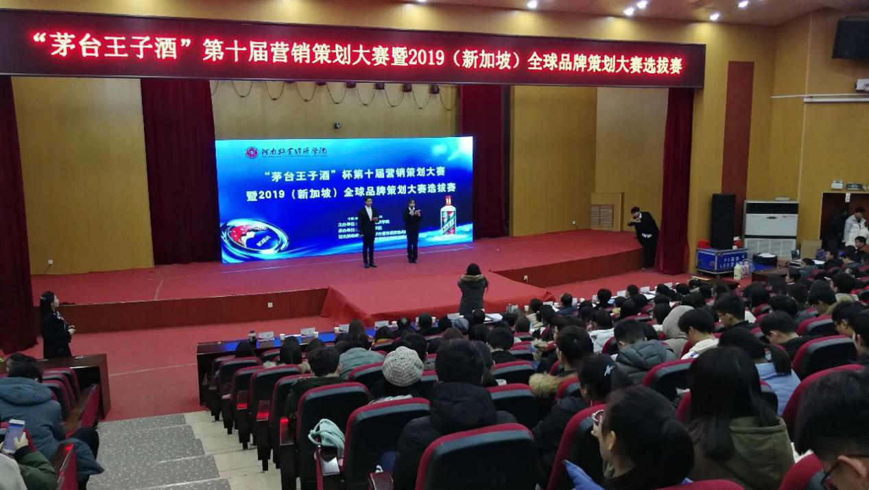 煮酒论英雄,营销赢天下。为促进威尼斯官网学生对市场营销理论与实践的深入认知,全面培养学生创新意识和策划能力,12月26日下午,“茅台王子酒”杯第十届营销策划大赛决赛暨2019新加坡品牌策划大赛选拔赛在威尼斯官网英才校区学术报告厅举行。副校长陈艳、贵州茅台酱香酒营销有限公司河南一区副经理闫浩然、河南茅酱酒业销售有限公司总经理李方、河南省副食品有限公司总经理助理陈全战、工商管理学院党总支书记贾江、院长王桂朵及部分教师代表出席,工商管理学院600余名学生现场观摩了比赛。