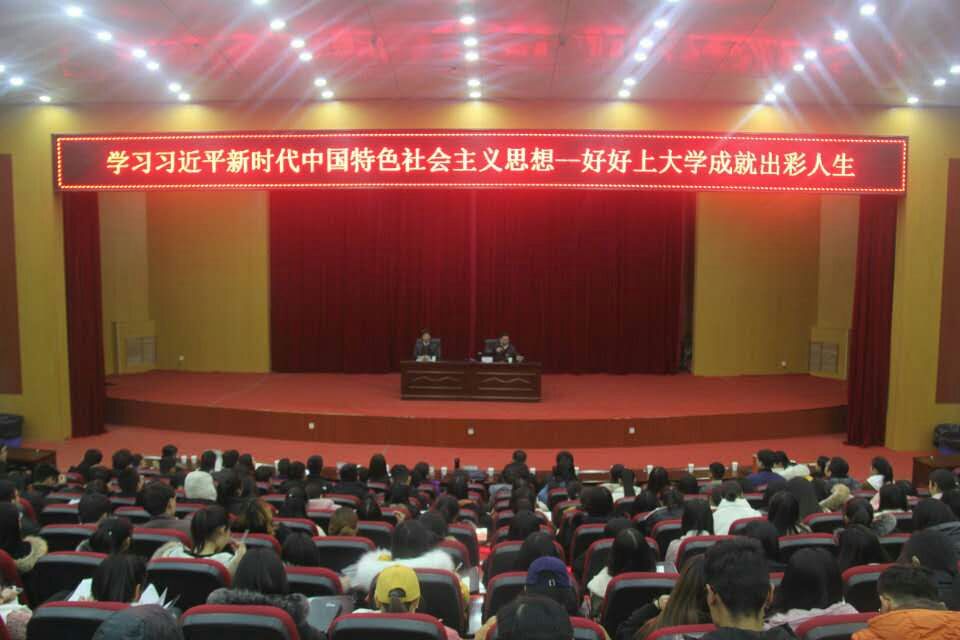 报告会上,罗士喜首先为同学们阐述了习近平新时代中国特色社会主义思想的重要意义、核心要义、理论品格、精神特质、理论框架和丰富内涵,主要与同学们分享了习近平总书记在“庆祝改革开放40周年大会”上的讲话,重点讲解了党的十九大报告中提出的“八个明确”“十四条基本方略”。为了便于同学们理解吸收,罗士喜不仅结合自身经历,更引用时政热点、中外经典案例,以通俗易懂、诙谐幽默的语言,使现场师生对习近平新时代中国特色社会主义思想有了更加深刻的理解。会上,他还为同学们推荐了《习近平的七年知青岁月》一书,并希望同学们对习近平总书记十八大以来的系列讲话深入学习了解。在讲到新时代大学本科教育的重要性以及当代大学生应如何做到德智体美劳全面发展时,他从德智体美劳五个方面展开讲解,希望同学们要志存高远、知行合一、修身立德、厚积薄发,将实现人生价值与勇于担当社会责任紧密联系,将自己的青春梦想和价值追求融汇在实现中国梦的时代大潮之中,谱写新时代的华丽篇章。他表示,历史的接力棒总归要交付于当代大学生,新时代需要新鲜的血液,新时代的大学生要担负起自己的使命,推动学校发展、开创新时代、实现中国梦正是我们当代青年大有可为的历史使命。