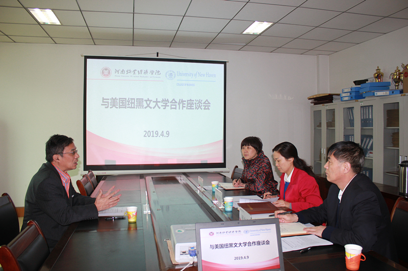 座谈会上,美国纽黑文大学商学院终身教授王承璐先生向我方介绍了纽黑文大学及商学院概况、合作项目类型及优势、项目合作条件要求等。