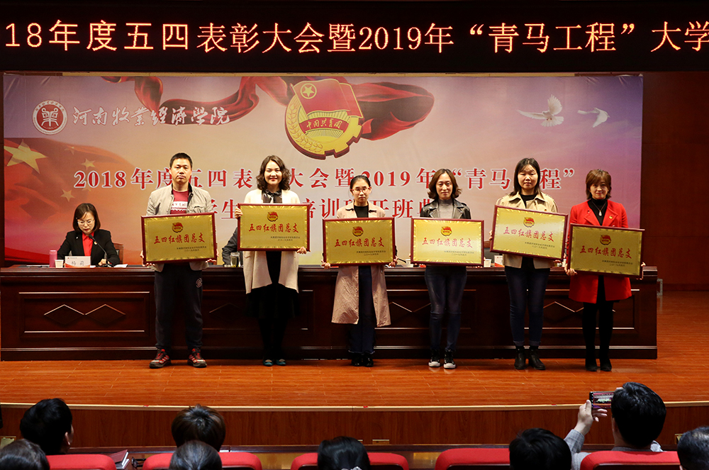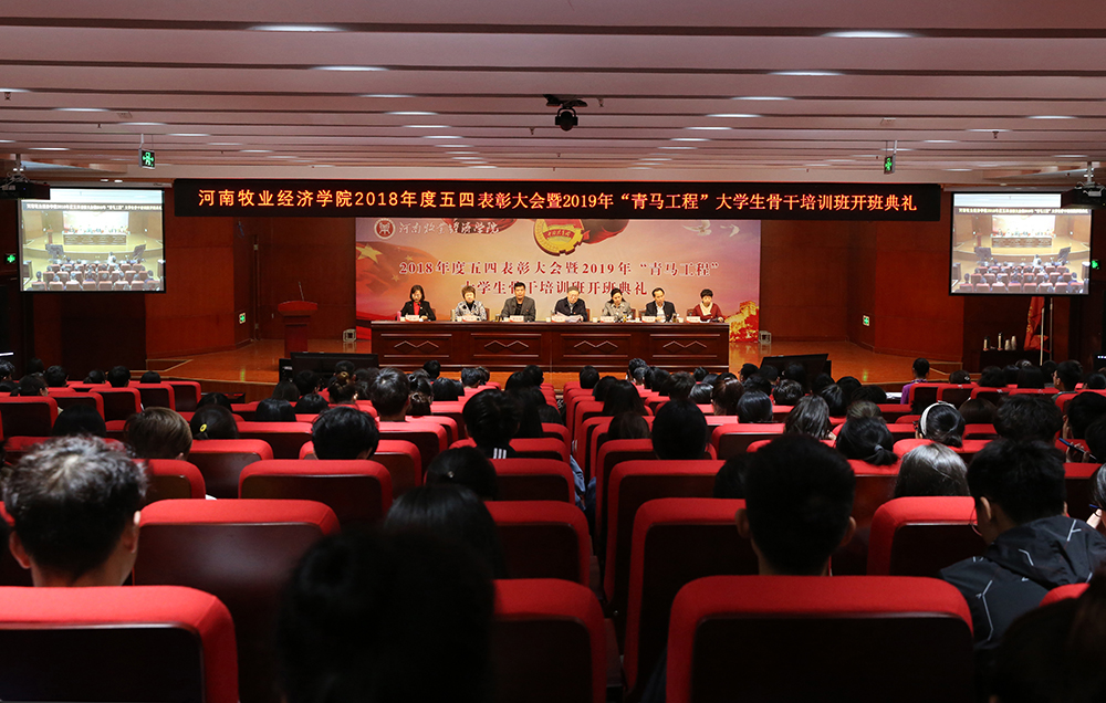 在五四运动100周年即将到来之际,为传承和发扬五四精神,进一步引导广大团员青年勇担新时代重任,4月26日下午,威尼斯官网2018年度五四表彰大会暨2019年“青马工程”大学生骨干培训班开班典礼在龙子湖校区图书馆一楼报告厅隆重举行,并以视频会议的形式在英才校区学术报告厅同步召开。校党委书记穆瑞杰,副校长杨志清,党委组织部部长、党校副校长戴天增,党委宣传部部长王凌彬,党委学工部部长、学生处处长张广芝,马克思主义学院党总支书记邵红梅,各学院党总支副书记、团总支书记和辅导员老师,受表彰的先进集体、个人代表以及2019年“青马工程”大学生骨干培训班全体学员等近800名师生代表参加了大会。大会由校团委副书记杨莉主持。
