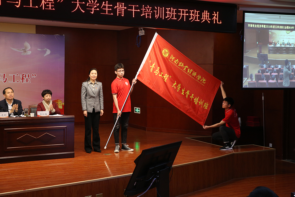 杨志清为本期“青马工程”大学生骨干培训班授旗。