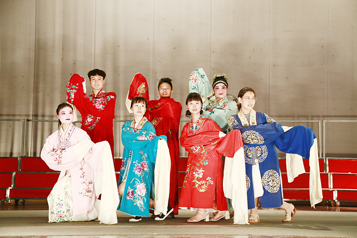 互动环节,现场观看演出的青年学生踊跃上台尝试,模仿并展示了水袖表演、武生走鞭、剑舞及武功展示等戏曲技艺,引得全场观众一片喝彩,台上台下充满了欢声笑语。