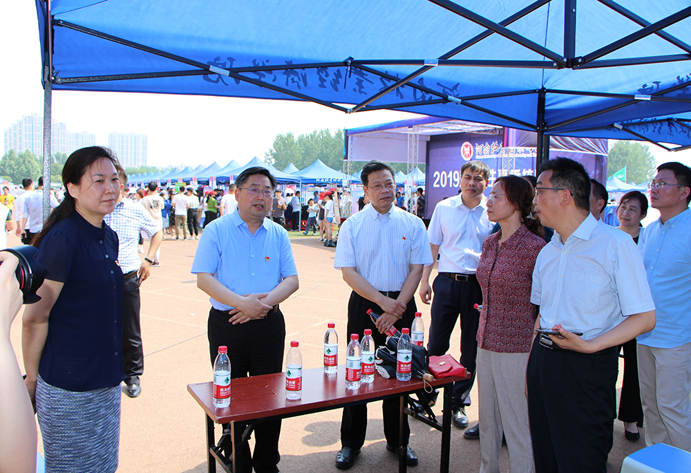 用人单位求贤若渴,莘莘学子踊跃应聘。双选会现场人头攒动、秩序井然,每家参会单位前都挤满了咨询的学生,企业纷纷以极具竞争力的薪资待遇、福利补贴、培训晋升等优厚条件和极具潜力的职业发展空间吸引毕业生投递简历。上午10时,校长罗士喜,校党委副书记李波,副校长陈艳、杨志清,河南省大中专学生就业服务中心就业创业服务部主任文正建等领导亲临双选会现场检查指导。在听取了招生就业处负责同志关于双选会组织和企业参会情况的简要汇报后,罗士喜一行来到一个个展位前,与用人单位、参会学生进行深入沟通和亲切交谈,了解企业招聘需求、薪酬待遇等情况,了解毕业生求职意愿和签约情况,并要求会务人员认真为参会企业和学生做好服务工作,搭建好交流平台,促进学生充分就业,提高学生就业质量,切实服务好毕业生就业“最后一公里”。