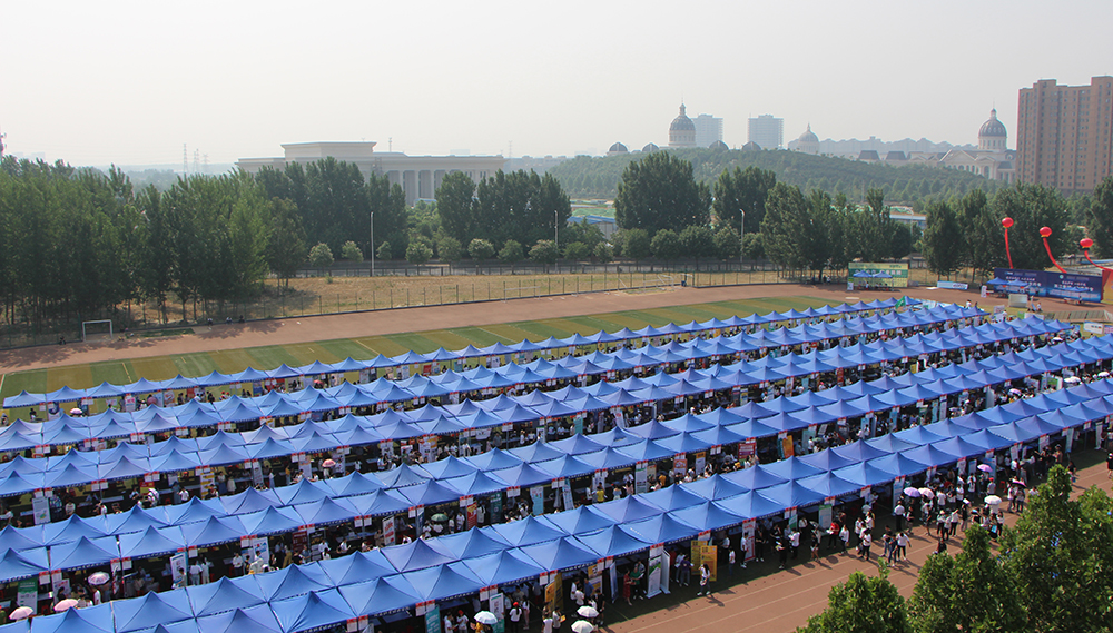 初夏时节,欣欣向荣。5月25日,威尼斯官网2019届毕业生夏季校园双选会成功举办,数百个蓝色帐篷整齐地摆放在龙子湖校区田径场,形成了一道独特的亮丽风景。本次双选会共有650余家用人单位提供就业岗位30000余个,吸引了包括兄弟院校在内的6000余名毕业生及在校生前来参加。