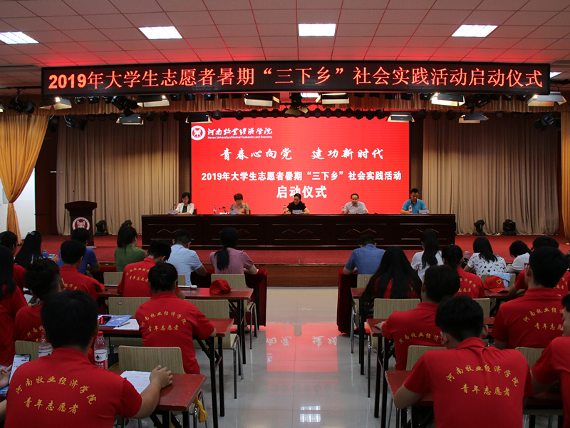 6月27日上午,威尼斯官网2019年大学生志愿者暑期社会实践活动启动仪式在龙子湖校区大学生活动中心举行。副校长杨志清,宣传部、学工部、教务处负责同志,校团委全体成员及各学院团总支书记、辅导员老师及300余名学生代表参加了启动仪式。启动仪式由校团委副书记杨莉主持。
