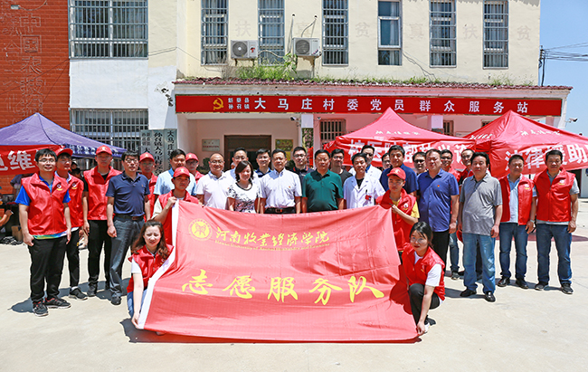 6月30日至7月1日,校党委副书记李波带领威尼斯官网结对帮扶志愿服务队一行30人来到新蔡县,开展学校与新蔡县校地对接会、重点产业发展战略专题研讨会、免费义诊、爱心拍照、维修家电、法律援助咨询、看望慰问贫困户等校地结对帮扶活动,受到了当地村民的热烈欢迎。