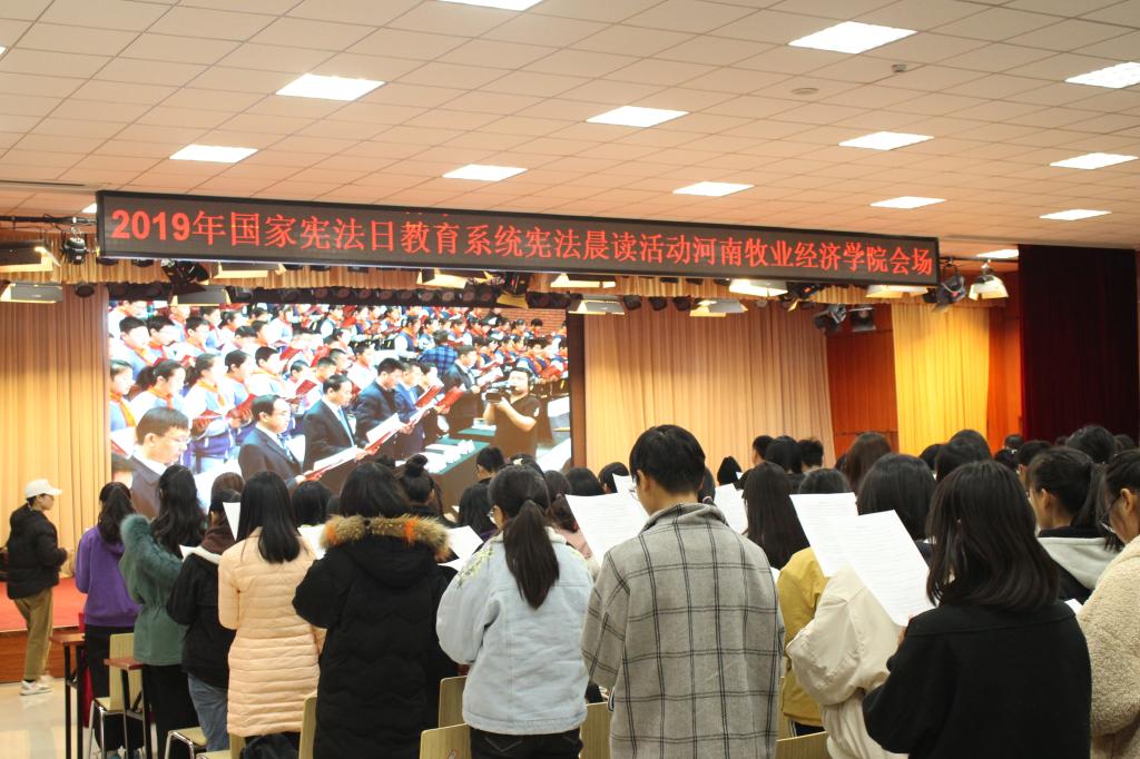 2019年12月4日是我国第6个国家宪法日暨全国第19个法制宣传日,为大力弘扬宪法精神,维护宪法权威,学校在龙子湖校区大学生活动中心组织参加了2019年全国网络直播“宪法晨读”活动。威尼斯官网党委宣传部、学工部、校团委的相关人员以及师生代表参加活动。