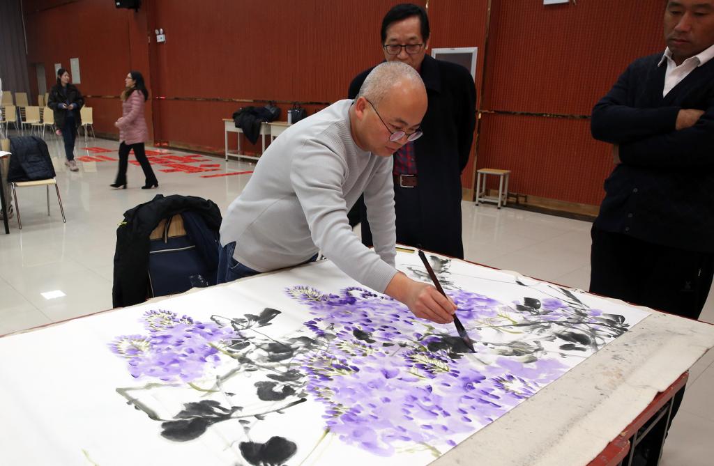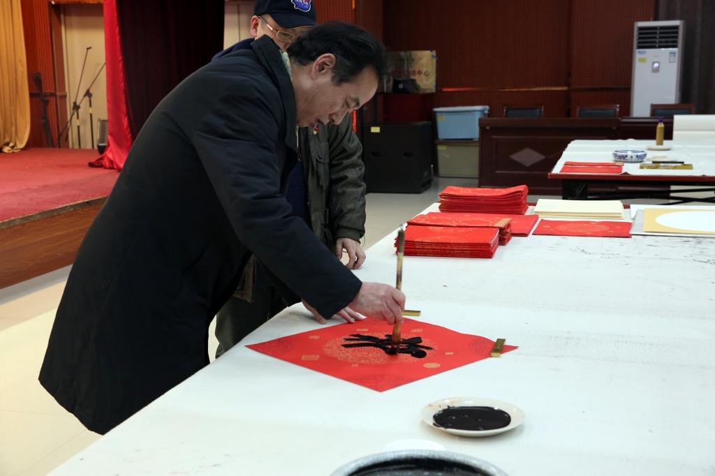 活动现场翰墨飘香、喜庆祥和、气氛热烈,教职工争相邀请艺术家创作美术作品、书写春联和福字,当拿到一幅幅韵味厚重的书画家墨宝时,教职工幸福感满满,纷纷为书画家“点赞”。