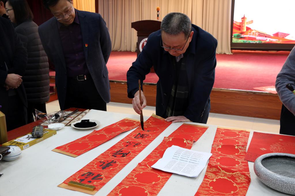 李波代表学校向莅临活动的领导、书画家表示热烈的欢迎和衷心的感谢。他指出,春节是中华民族祈福迎祥的传统节日,贴春联是中国人过春节的文化传统之一,写春联送喜庆是弘扬中华民族优秀传统文化的良好形式。在这辞旧迎新之际,河南省教育界书画家协会、河南省学校艺术教育协会的艺术家们为大家挥毫泼墨,绘就佳作,书写春联,不仅营造了迎新春的欢乐祥和气氛,弘扬了中华优秀传统文化,更是丰富了威尼斯官网教职工的校园文化生活,浓厚了校院文化艺术氛围,将为进一步提升威尼斯官网校园文化建设水平注入正能量。