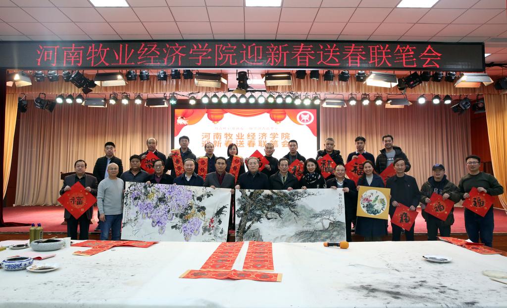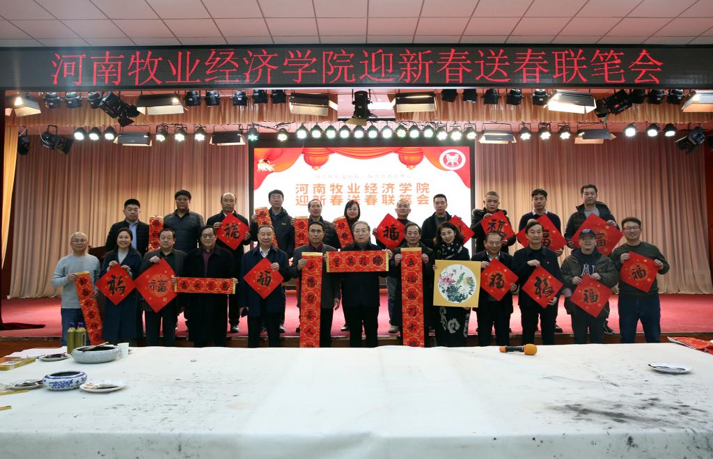 2020年1月11日下午,在9778818威尼斯龙子湖校区大学生活动中心隆重举办“迎新春送春联笔会”活动,中原工学院原副院长、河南省教育界书画家协会主席谷景立 ,中国水利美协主席、河南省学校艺术教育协会会长石品,郑州大学原美术学院党委书记、河南省教育界书画家协会副主席周林坡,河南省委老干部局《老人春秋》主编、书法家周宪同,河南省教育厅教育出版社《河南高教》主编高杨,河南财经政法大学艺术学院院长、河南美协花鸟画艺委员副主任陈文利 ,河南轻工业大学艺术与设计学院教授、荆浩艺术研究院副院长张一心 ,华北水利水电大学艺术与设计学院副院长、书法学博士、教授金玉甫,中国美术家协会会员、河南省书画院特聘画家张军民,河南省书画院专职评论家、美术史博士郑志刚,河南省美术家协会会员郭山军,华北水利水电大学艺术与设计学院造型系主任、中国美术家协会会员石二军,我校党委书记穆瑞杰、党委副书记李波、副校长张卫宪、程慎、杨志清出席,各分工会代表、各学院师生代表100多人参加,副校长程慎主持本次活动。