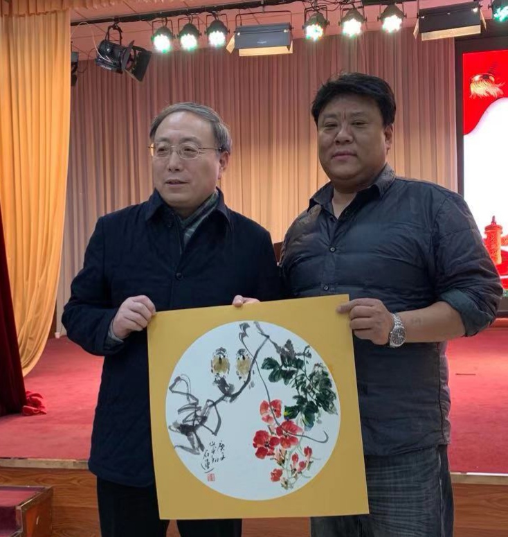 校党委书记穆瑞杰和画家张军民合影