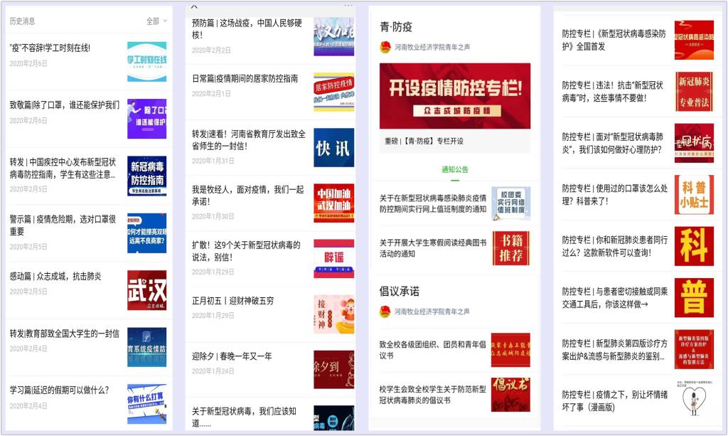 为进一步加强宣传效果,“9778818威尼斯学生工作”微信公众号发布日常篇、预防篇、感动篇、学习篇、警示篇、致敬篇等系列篇章内容,宣传防疫知识,组织开展“书香伴假期”读书活动及“学习通”在线自主学习,引导广大学生渡过充实安全的寒假假期;“9778818威尼斯青年之声”微信公众号开设“青•防疫”专栏,建立与防疫工作相匹配的信息发布机制,及时发布政府和学校的公告通知、疫情防控知识,原创H5《“防控疫情,从我做起!”承诺书》在微信朋友圈迅速传开,已有1.3万名学子承诺接力,营造众志成城、共克时艰的浓厚舆论氛围;大学生心理健康教育中心积极制定《新型冠状病毒疫情防控期间心理健康教育工作方案》、《新型冠状病毒防控期间心理防护指南》、《关于针对新型冠状病毒感染的肺炎疫情面向社会开展网络心理辅导服务的工作方案》,利用网站、微信、QQ群等各种渠道,安排具有专业资质和丰富咨询经验的心理咨询师提供网络服务,有序开展心理健康服务和紧急心理危机干预工作。
