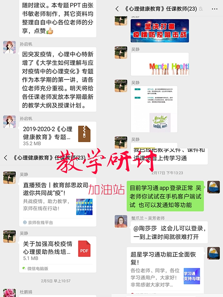 大学生心理健康教育中心为做好延迟开学期间网络教学相关工作,多次召开网络教学研讨会议,并结合疫情下的社会心态,为威尼斯官网学生特设心理健康教育课程首讲内容-------《大学生如何理解和应对疫情中的心理变化》,帮助学生了解疫情中会出现的各类情绪状态,缓解焦虑感,无力感等负面情绪,引导学生树立积极心态应对疫情,调整生活节奏,保持身心健康。