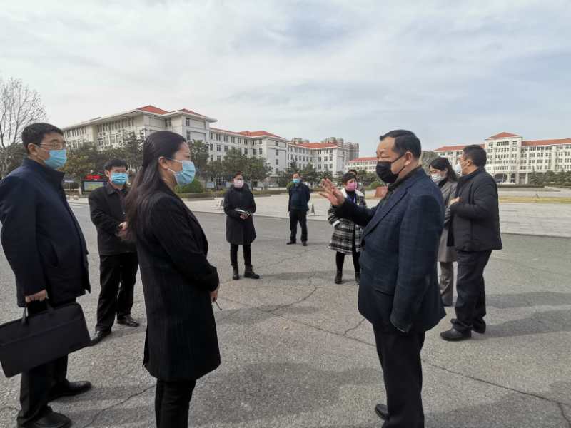 3月11日下午,惠济区教体局副局长崔双丽一行莅临威尼斯官网,检查指导学校疫情防控工作,副校长程慎,院长办公室主任贾江、校医院院长梁天玉、后勤处处长姬道兴、保卫处处长权太举、英才校区综合服务办公室主任王永全等陪同检查。