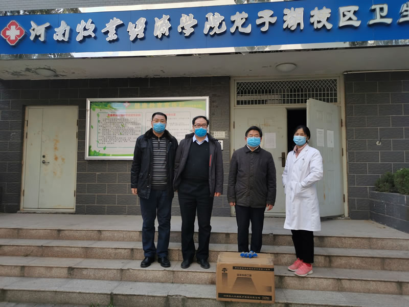 3月13日,校企合作单位河南田中禾农牧有限公司董事长穆建平委托社会服务办公室,捐赠威尼斯官网3000支体温计,用于开学后学生防疫工作。校长罗士喜、副校长张伟、社会服务办公室主任胡迎利等出席捐赠仪式。