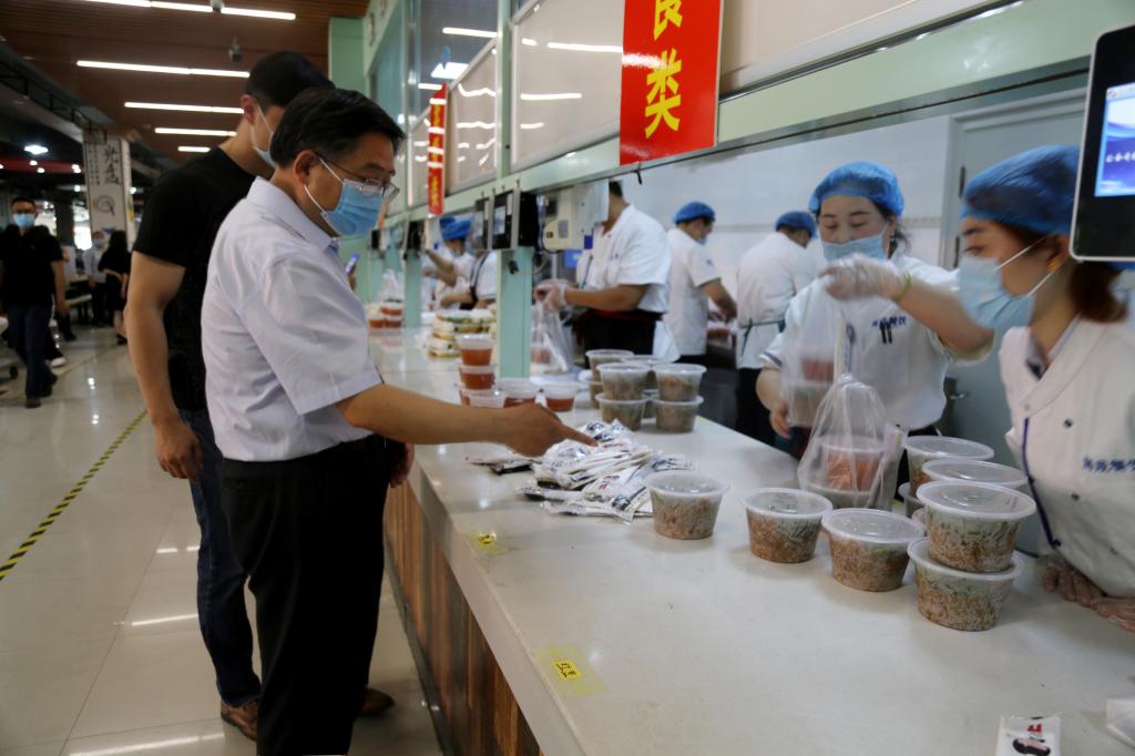 为了确保返校复学期间学生食品卫生及用餐环境安全,5月25日,校党委书记穆瑞杰,校长罗士喜,校党委副书记李俊杰、李波,校纪委书记李中华,副校长张伟、杨志清、姚毅等校领导先后深入学生食堂,查看学生饮食安全卫生情况。党委办公室、宣传部、后勤管理处等部门负责同志陪同。