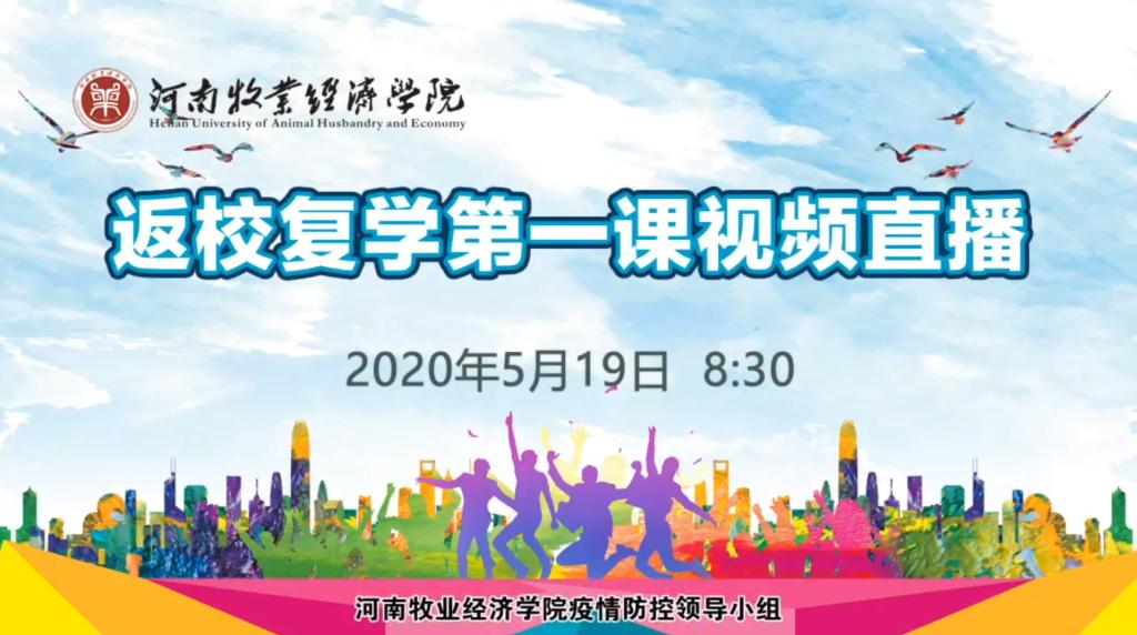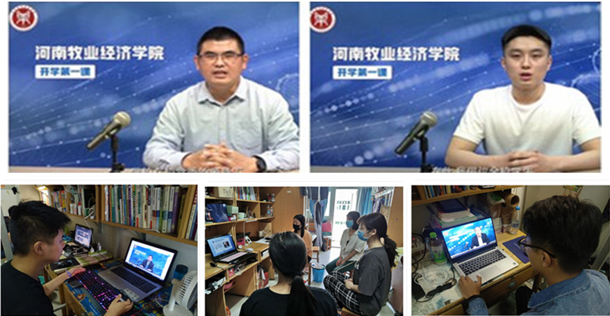 上午8点30分,全体返校学生通过学校直播平台、官方微信号、bibili直播平台、斗鱼直播平台、和商务直播平台等直播平台进行在线学习,从观看《河南省高校返校复学第一课》开始,开启威尼斯官网学生返校复学第一课学习。整个学习共分三个部分,分别是观看河南省高校返校复学第一课、学校领导授课和师生代表发言、各学院开展活动。